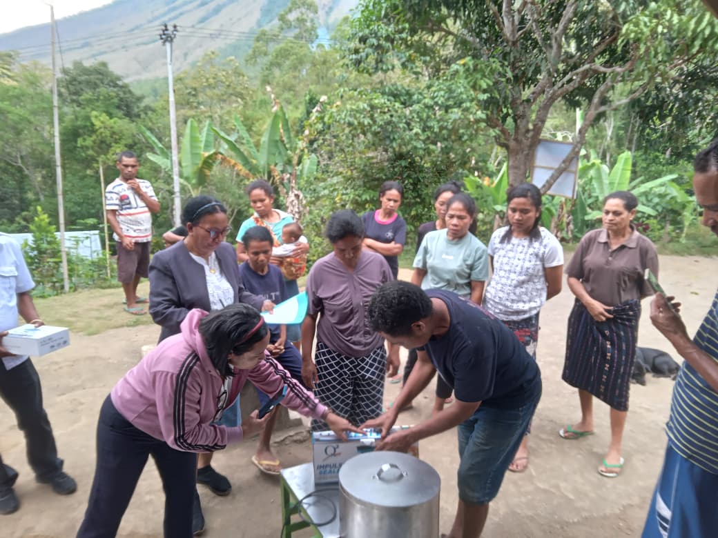 Penyerahan alat ekonomi produktif dilakukan di rumah ketua kelompok tani hutan Tangi Lizu yang diserahkan oleh Ibu Maria Angeli Igo, S.Hut sebagai koordinator penyuluh dan koordinator kegiatan. “Alat ekonomi produktif yang diserahkan agar digunakan dengan baik dan berkelanjutan, jangan sampai disini saja”, ujar Ibu Arlin.