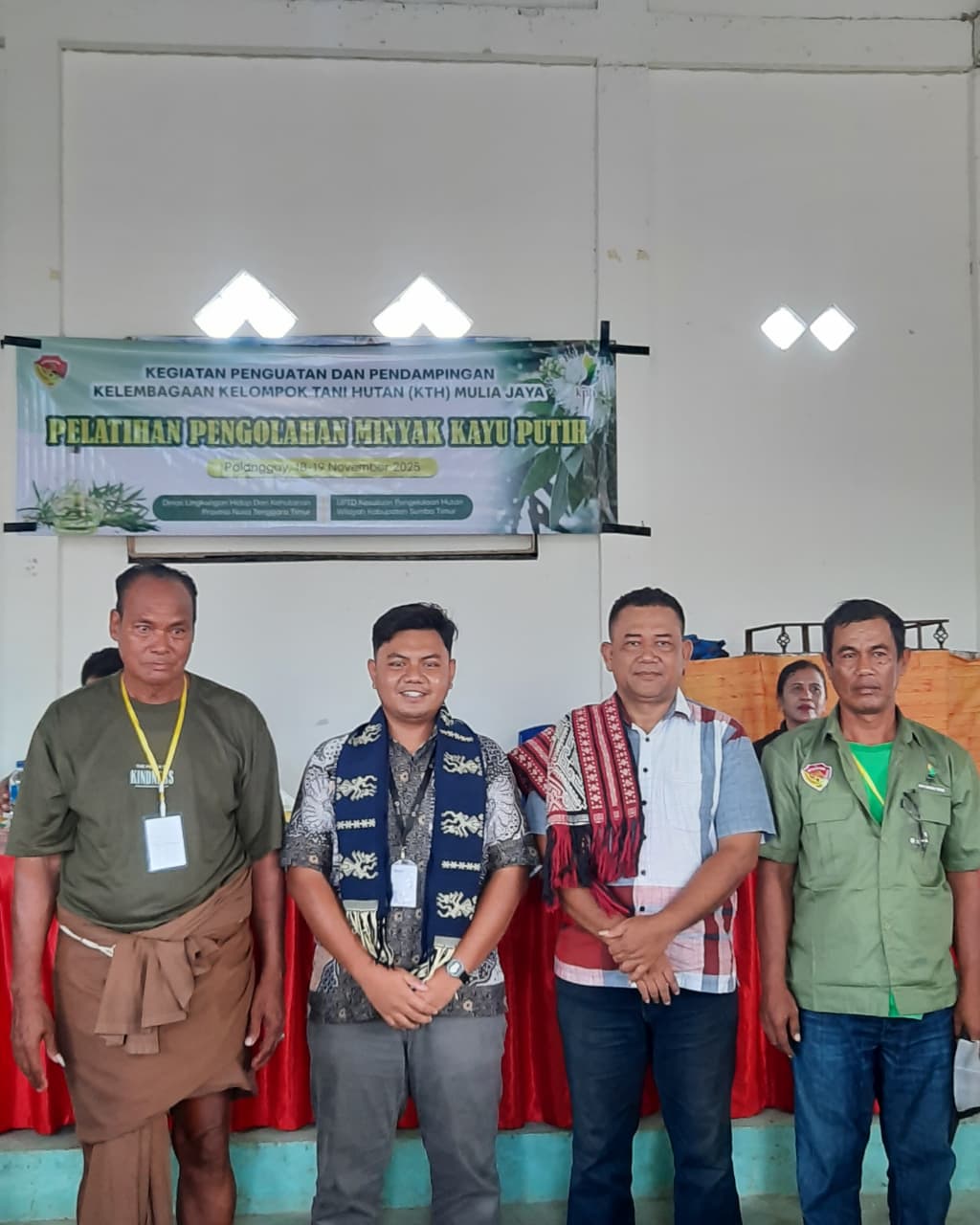 Dinas Lingkungan Hidup dan Kehutanan Prov. NTT melalui UPTD KPH Wilayah Kab. Sumba Timur bersumber dari Dana DAU Spesifik Grant melakukan kegiatan Pembinaan dan Peningkatan Kapasitas Kelembagaan KTH dalam bentuk Pelatihan Pengolahan Minyak Kayu Putih, adanya pelatihan ini diharapkan KTH mempunyai kelembagaan yang baik/solid, mandiri dan mampu mengelola sumberdaya alam secara lestari dan berdampak bagi peningkatan usaha ekonomi KTH.